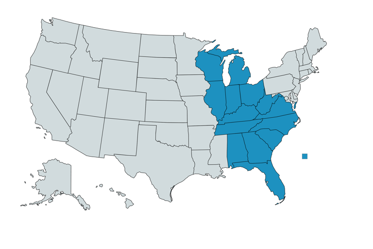 NMV Expedition provides trucking services across the Southeast and Midwest, with a focus on reliable long‑haul and regional freight. The map highlights our primary service states and lanes, but we may be able to accommodate additional routes upon request.